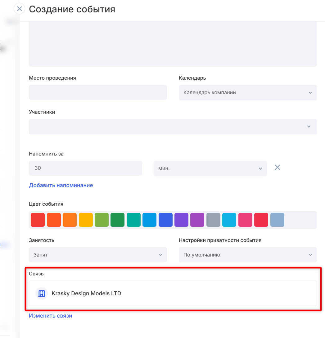 Создание события с контрагентом