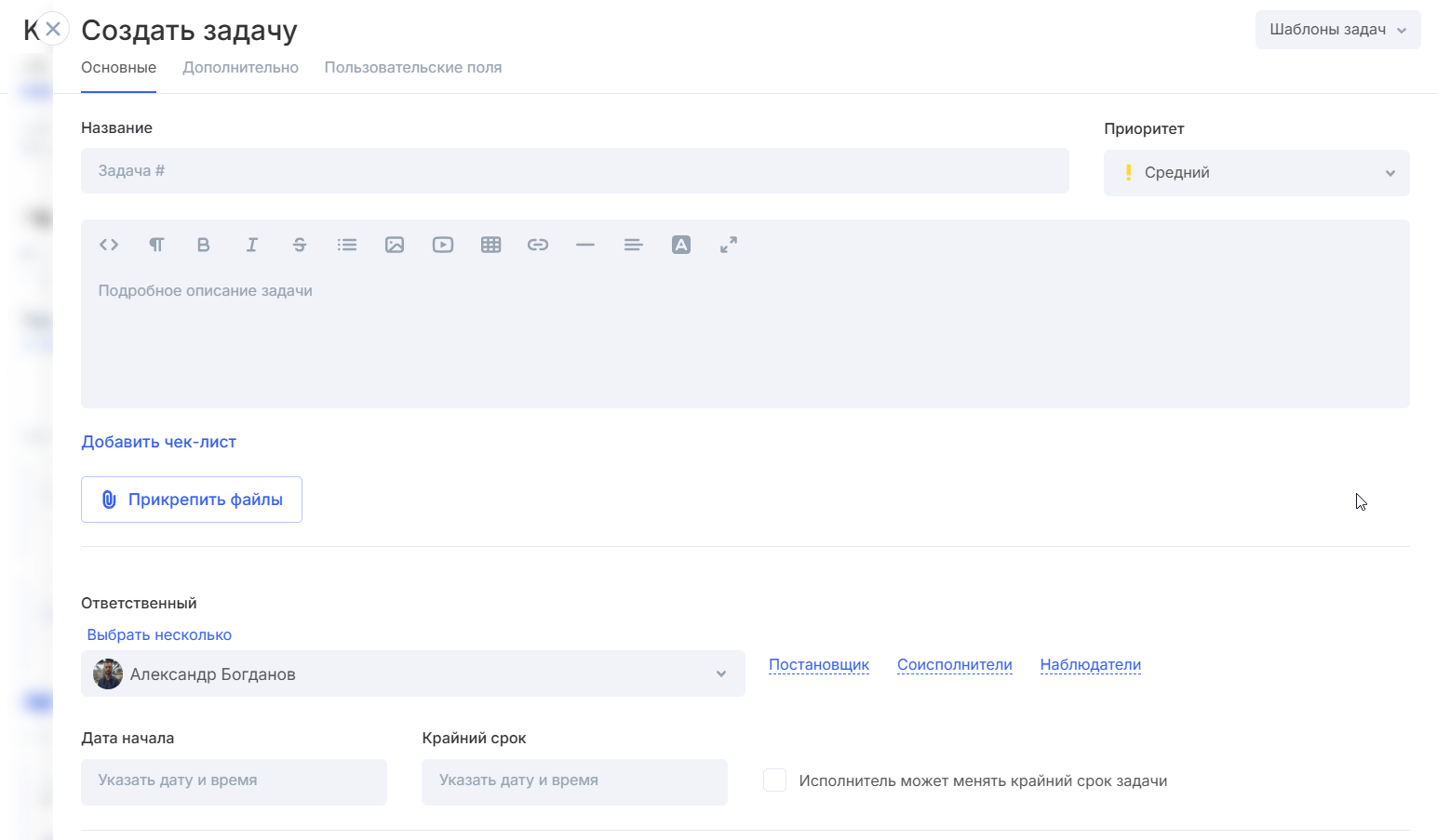 Вы перейдете к форме создания задачи. Заполните все нужные поля.