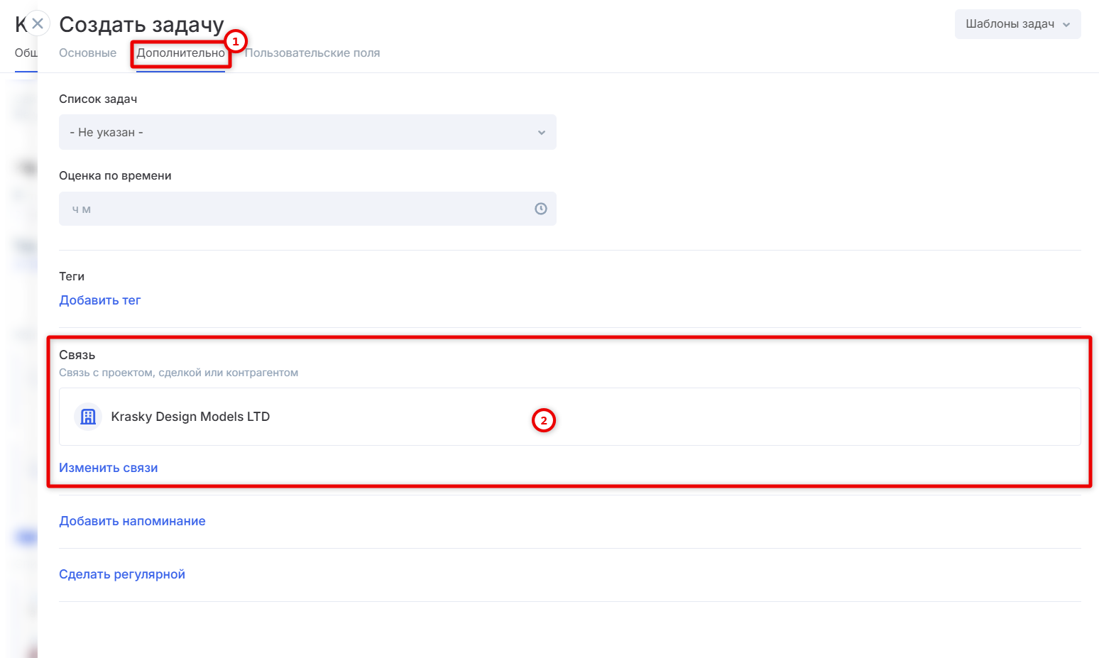 Создание задачи из контрагента