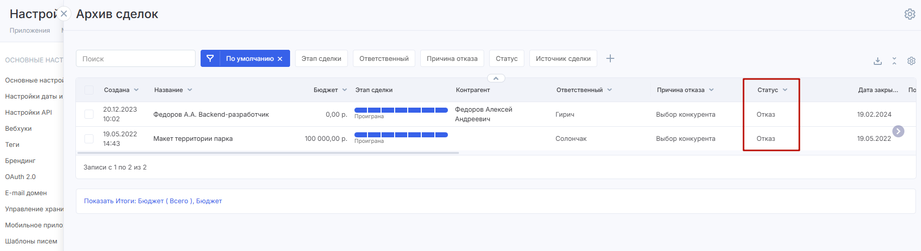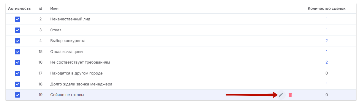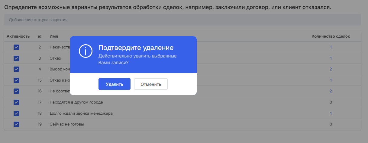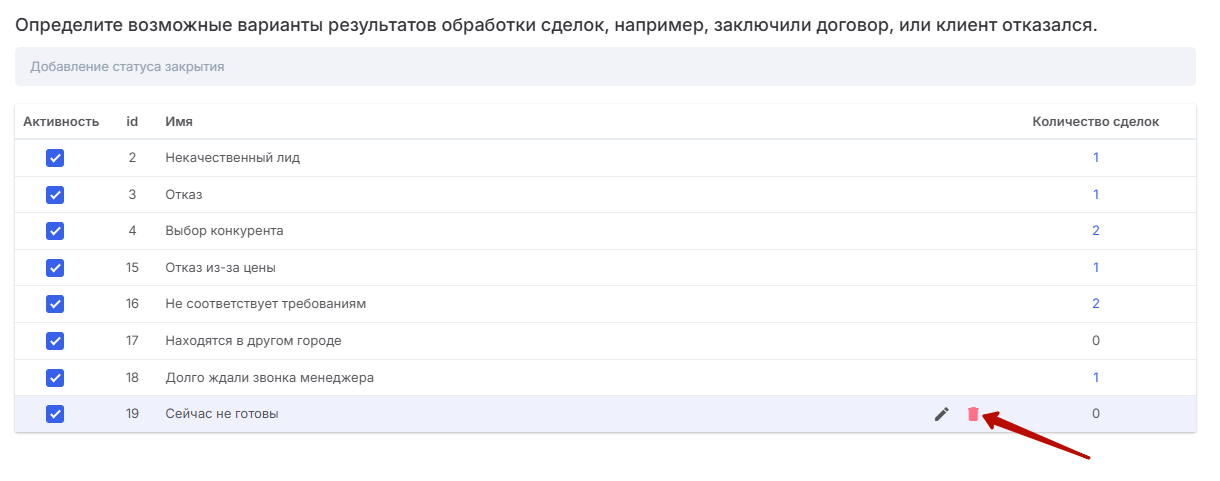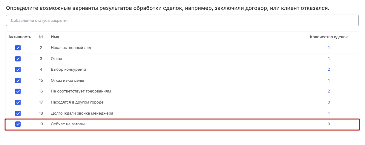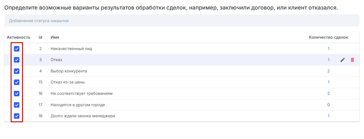 Источники сделок — список каналов коммуникации с клиентами, откуда приходят лиды и сделки;