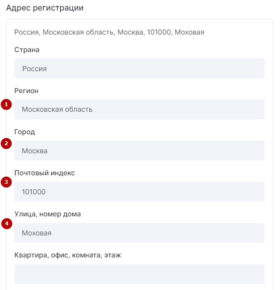Если есть только фактический адрес или не заполнены все необходимые поля в адресе регистрации, то в карточке этого контакта/компании в MailChimp будет указан фактический адрес.