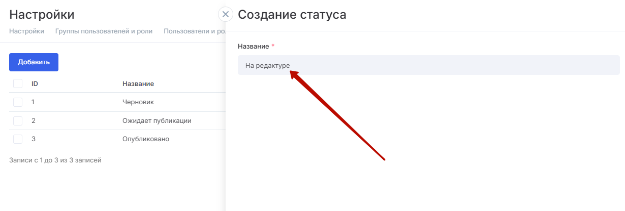 В открывшейся форме просто добавьте название и сохраните новый статус.