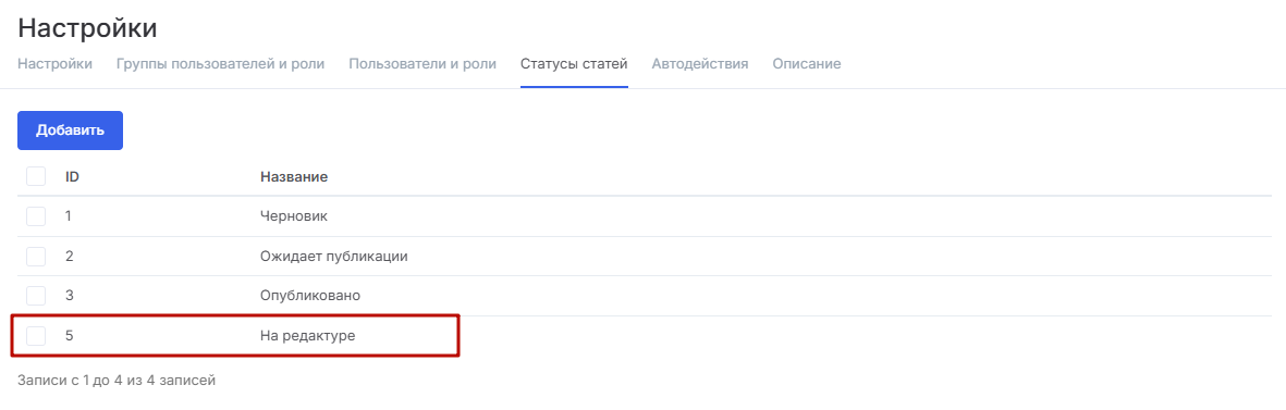 По умолчанию в настройках модуля «База знаний» доступны 3 статуса: