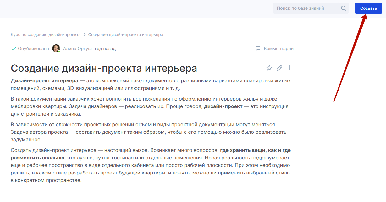 Для этого откройте нужную статью в базе знаний и приступите к созданию статьи.