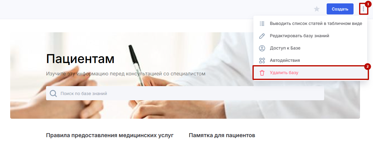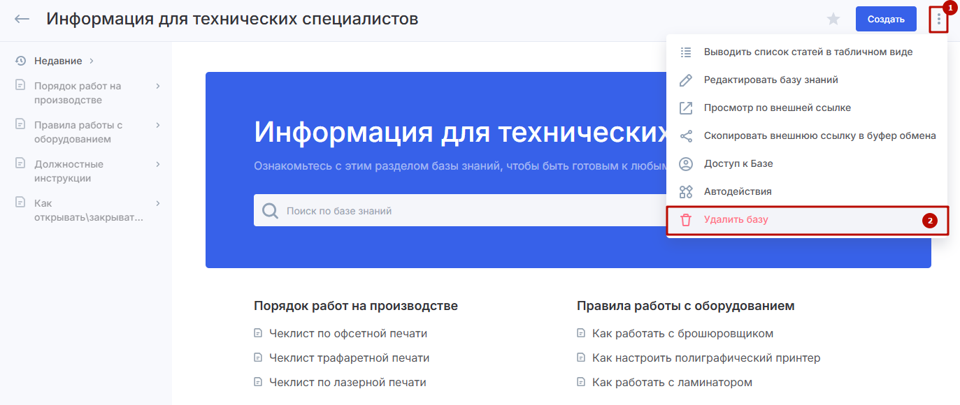 Удалить базу знаний можно всего в пару кликов — одним из двух способов.