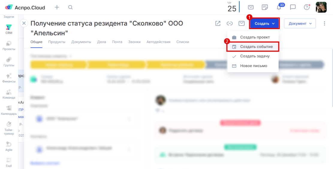 Создание события из сделки