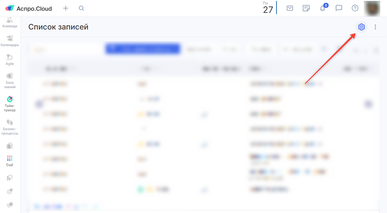 Пользователям с правами уровня «Администратор» к модулю «Тайм-трекер» на любом экране самого модуля доступна иконка в виде шестерни. По нажатию на нее открываются настройки модуля.