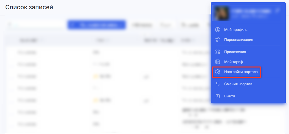 Нажмите на аватар в правом верхнем углу экрана и в контекстном меню выберите «Настройки портала».