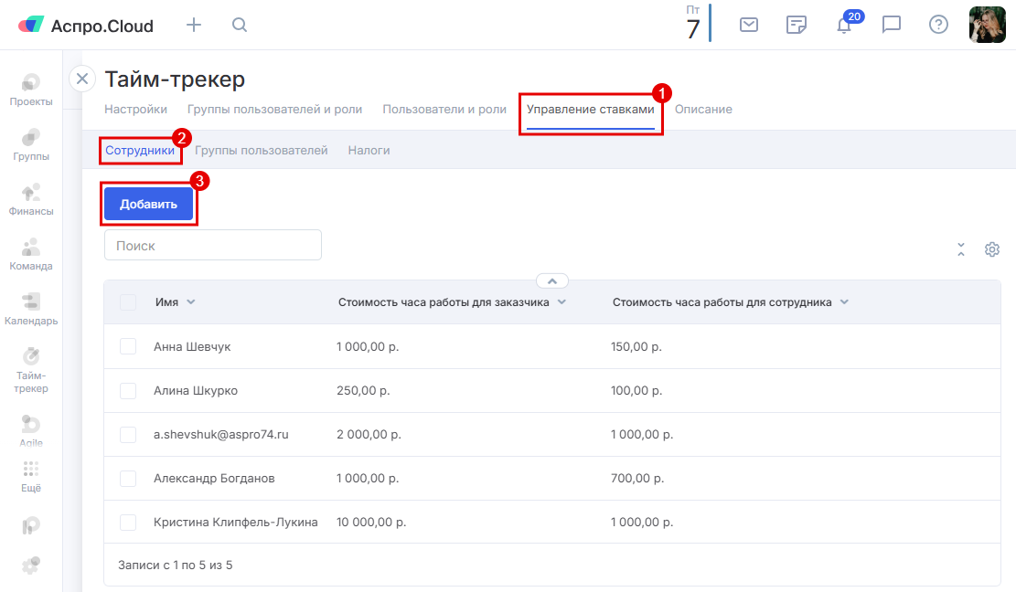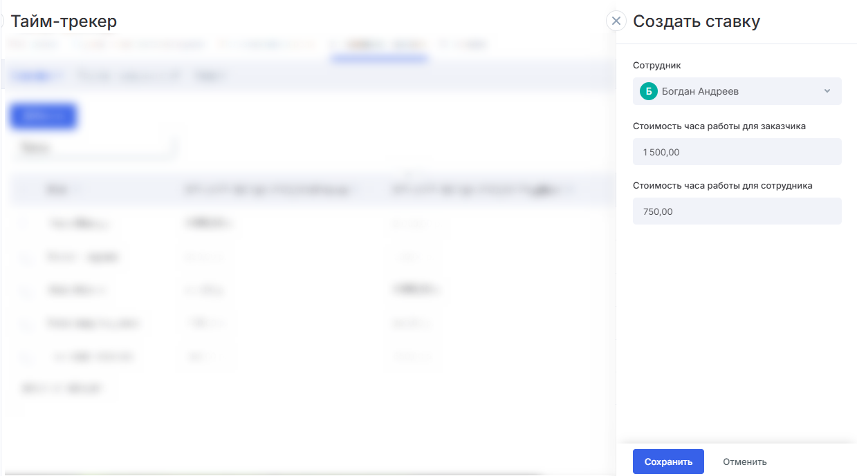 Управление ставками в тайм-трекере