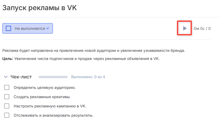 После запуска задача переходит в статус «В работе». Можно поставить таймер на паузу или остановить его (1). Если остановить таймер, система добавит потраченное время к заданию. Также таймер активной задачи отображается в шапке портала (2), позволяя быстро приостановить либо продолжить фиксирование времени (3), не заходя в саму задачу.
