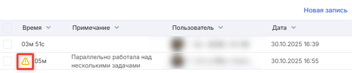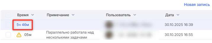 Важно: при ручном создании и редактировании записи вы можете выбрать любого пользователя в качестве автора записи. Однако, в разных отчетах время может быть отнесено к разным пользователям, в зависимости от контекста. В отчете «Затрачено времени по дням» время будет привязано пользователю, который был указан автором записи. В других отчетах системы время засчитывается ответственному за задачу, независимо от того, кто указан автором записи.