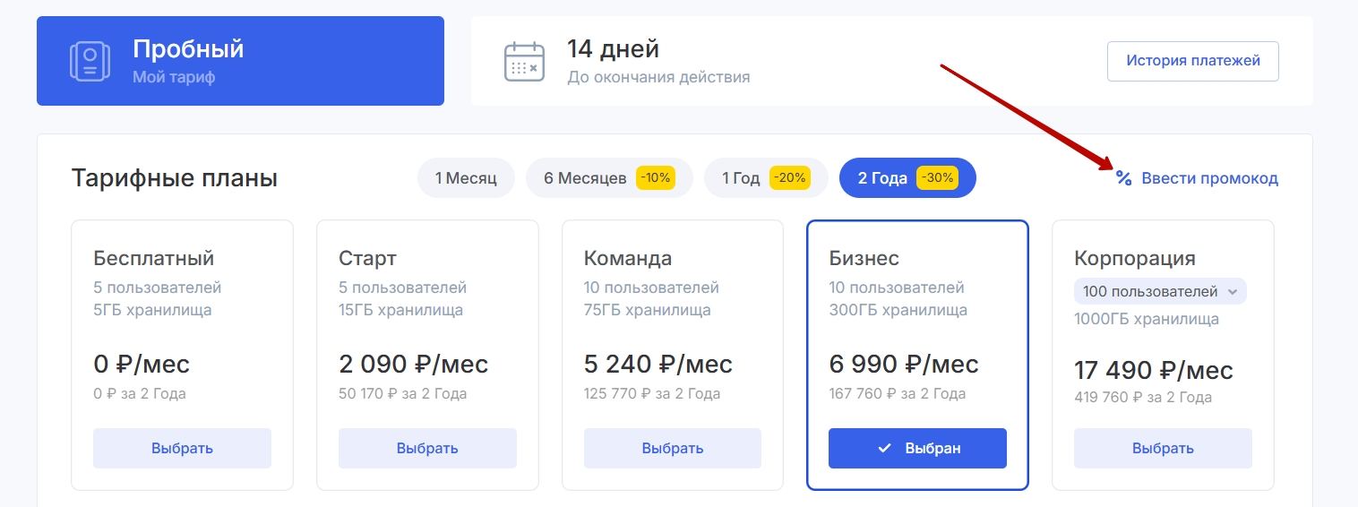 Если вы стали счастливым обладателем промокода, дающего вам скидку на оплату тарифа, то применить вы его сможете следующим образом: