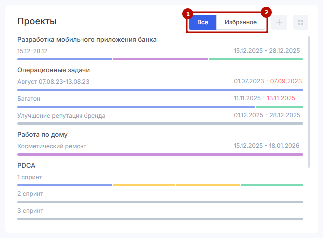 избранные (2) — проекты, которые вы отметили как избранные.