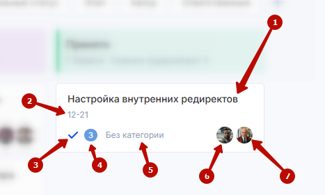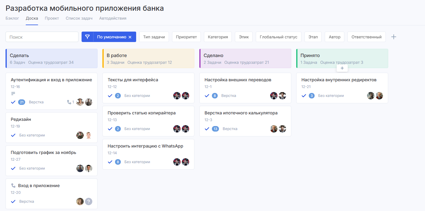 Сами задачи на доске представлены в виде карточек с указанием: