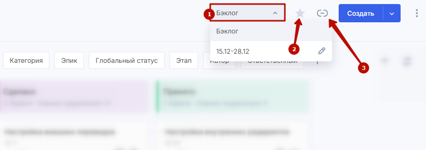 селектор для выбора бэклога или одного из спринтов (1);