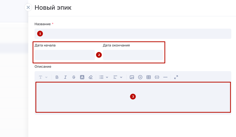 укажите сроки (2) — ориентировочные даты начала и окончания эпика;
