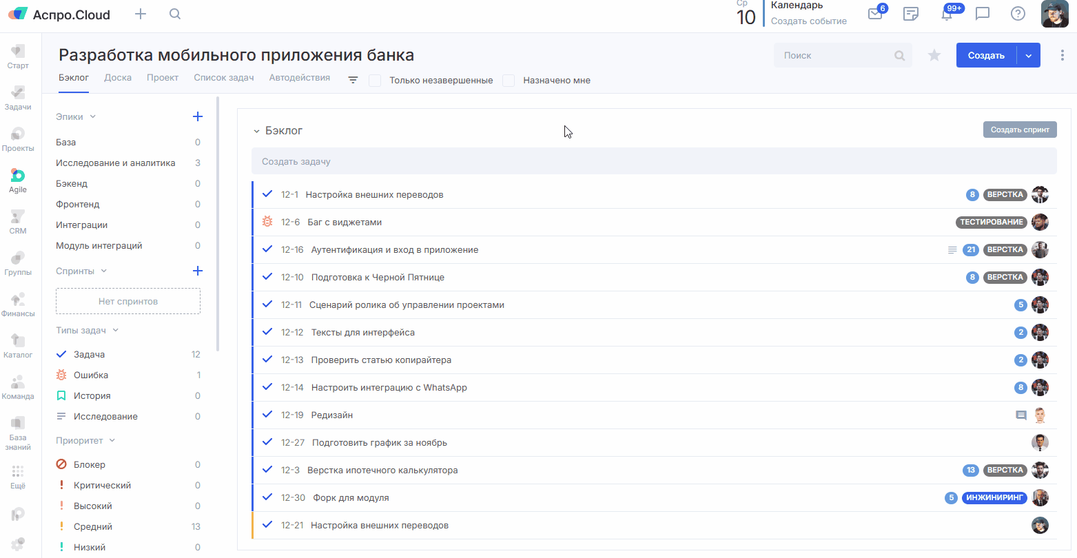 Также перенести задачу в эпик можно через бэклог — с помощью drag’n’drop.