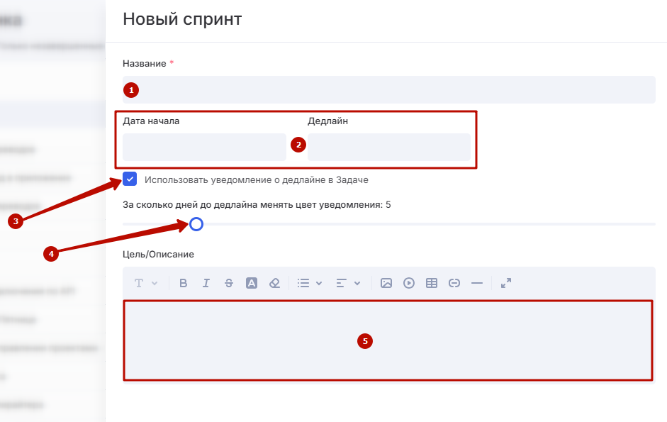 через слайдер установите количество дней (4), за которое будет появляться уведомление о скором окончании спринта;