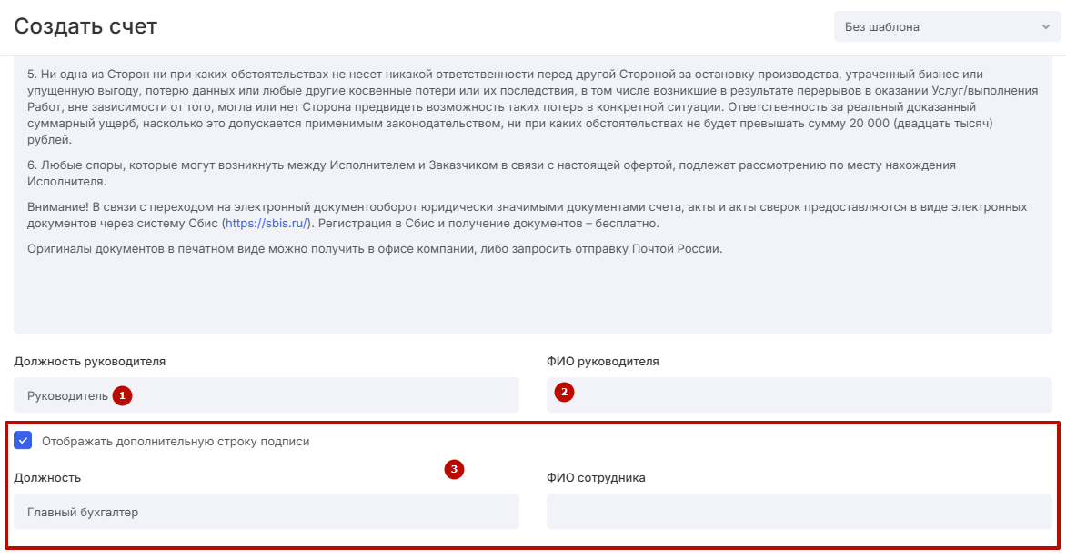 Далее заполните и/или отредактируйте текстовые поля, если их содержание не определено формой счета: