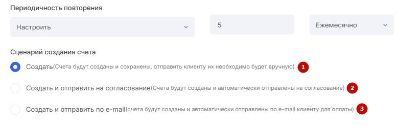 Далее самое важное — укажите настройки регулярности выставления счета: