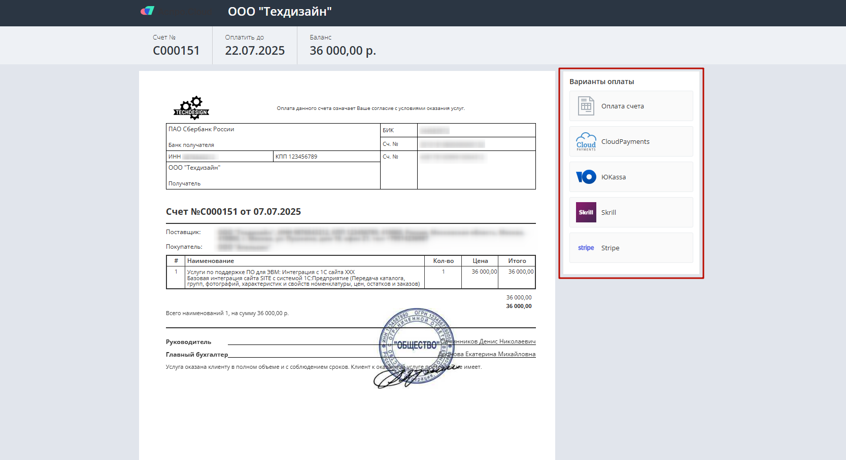 Если в настройках вашей организации загружена печать, вам будет предложен вариант с печатью или без.