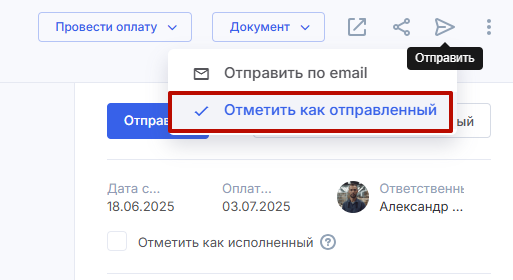После отправки счета таким способом, не забудьте пометить его как отправленный.