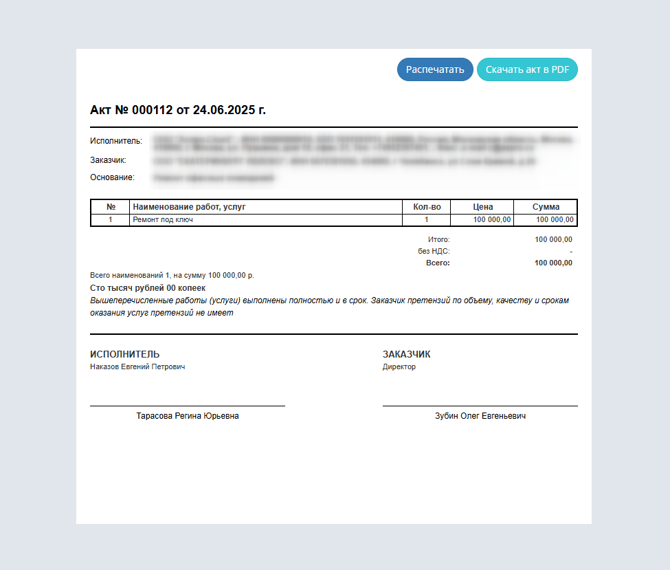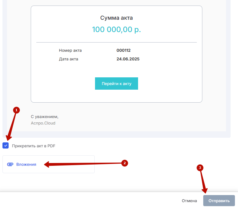 Важно: отправленный акт нельзя отредактировать или удалить.