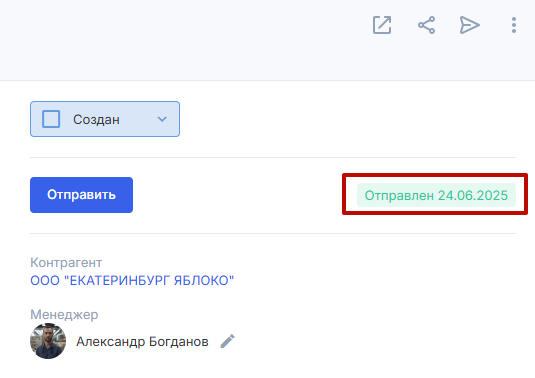 После отправки или отметки об отправке появится иконка с указанием даты.