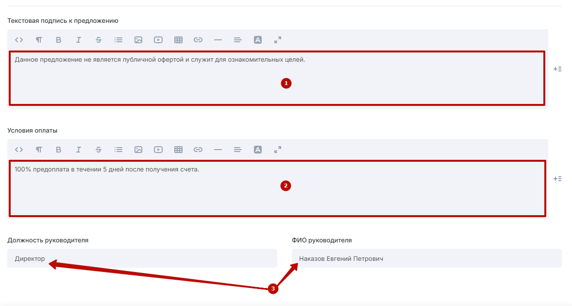 реквизиты руководителя (3), если в печатной форме они не прописаны.