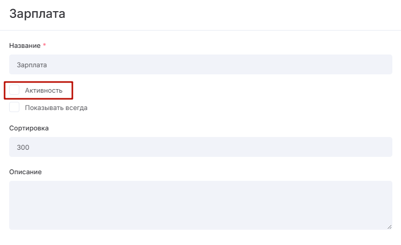 Если же категория, по которой были начисления, вам больше не нужна, вы можете ее деактировать. Для этого достаточно убрать галку с чекбокса «Активность».