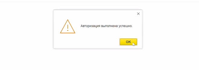 Если данные указаны корректно, вы получите сообщение об успешной авторизации.