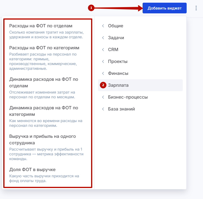 С помощью этих виджетов вы сможете легко и быстро собрать статистику по выплате заработной платы.
