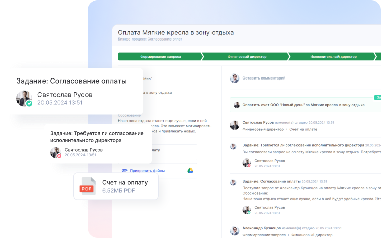 Выставление файла на оплату может контролировать любой сотрудник. Все зависит от вашей структуры компании и обязанностей. Чтобы документ попал к нужному специалисту, назначьте его в системе ответственным за согласование.