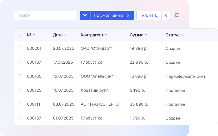 Да, если счет уже создан в системе, вы можете сформировать УПД онлайн на его основе. Все данные из счета — товары, цены, ИНН и адреса — подтянутся автоматически.
