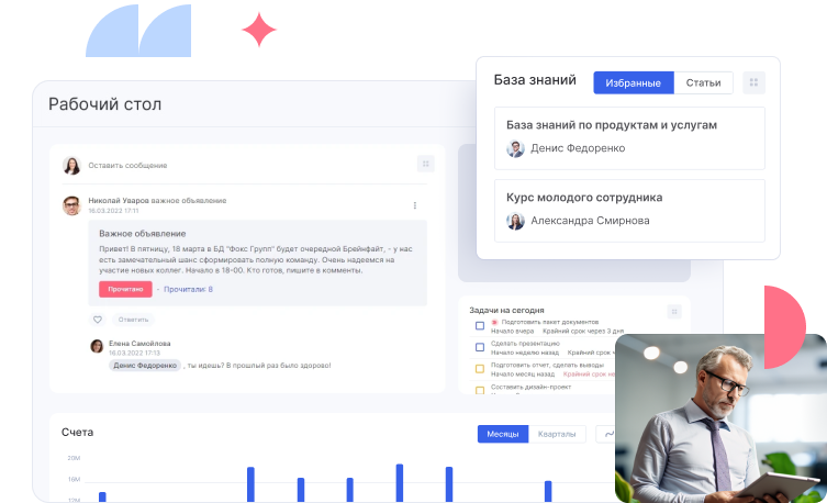 Аспро.Cloud — это не только платформа для создания базы знаний. В любой тариф также входит функционал модулей CRM, «Проекты», «Финансы» и «Счета и акты». Вы сможете пользоваться всеми инструментами без дополнительных вложений.