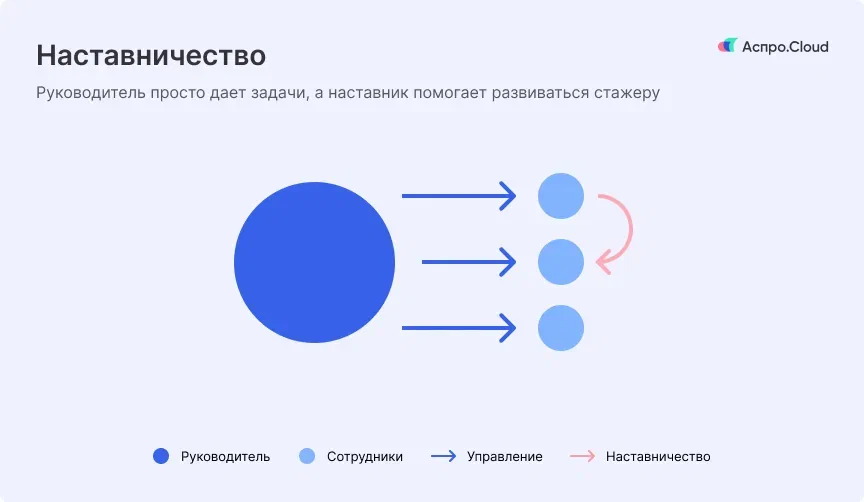 За новичком закрепляют наставника, который будет отвечать на вопросы и помогать с трудностями в работе. Наставником назначают более опытного и ответственного сотрудника.