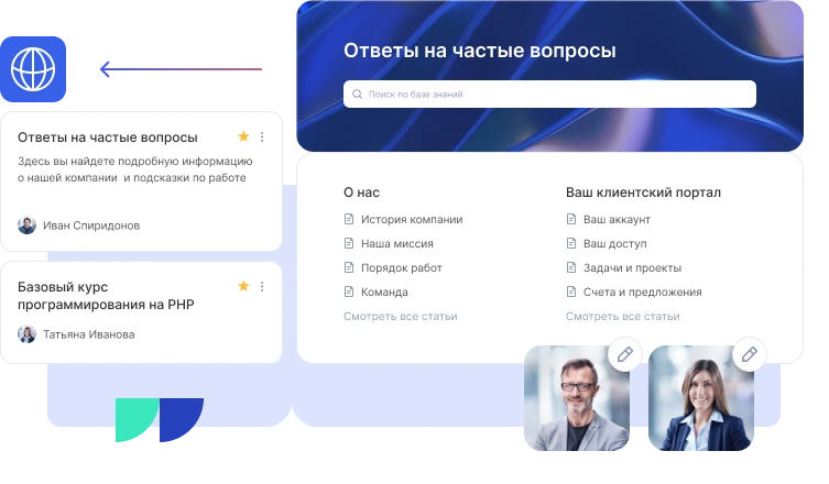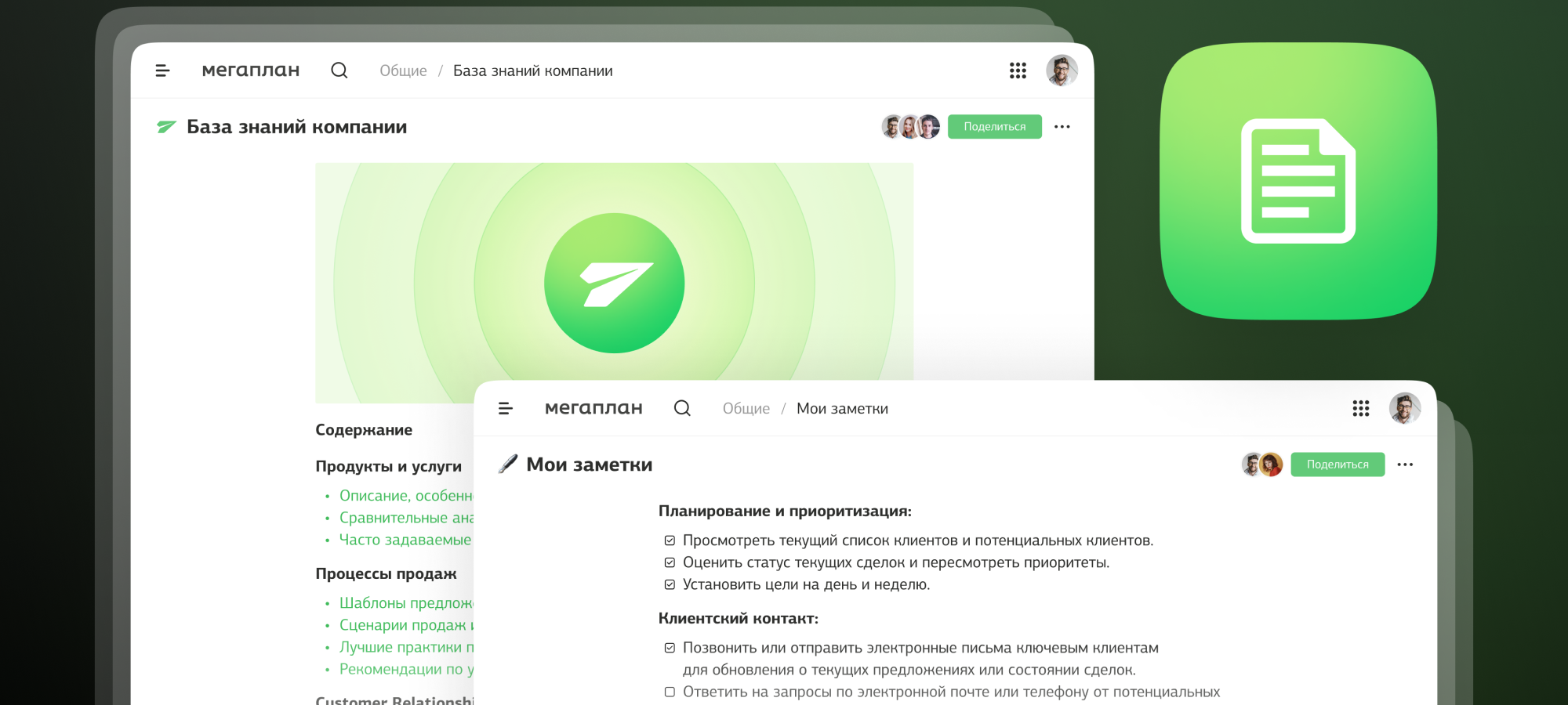 Мегаплан — программа управления бизнесом с возможностью создания внутренней и внешней базы знаний.