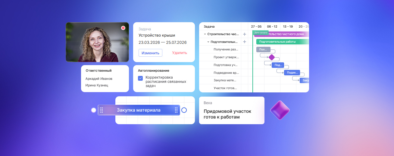 Это включает удобный редактор, автопланирование сроков, настройка связей между тасков и поддержка фильтрации по проектам и ответственным. Все это помогает быстро увидеть реальное состояние проджекта на диаграмме Ганта.