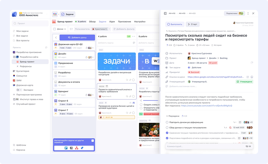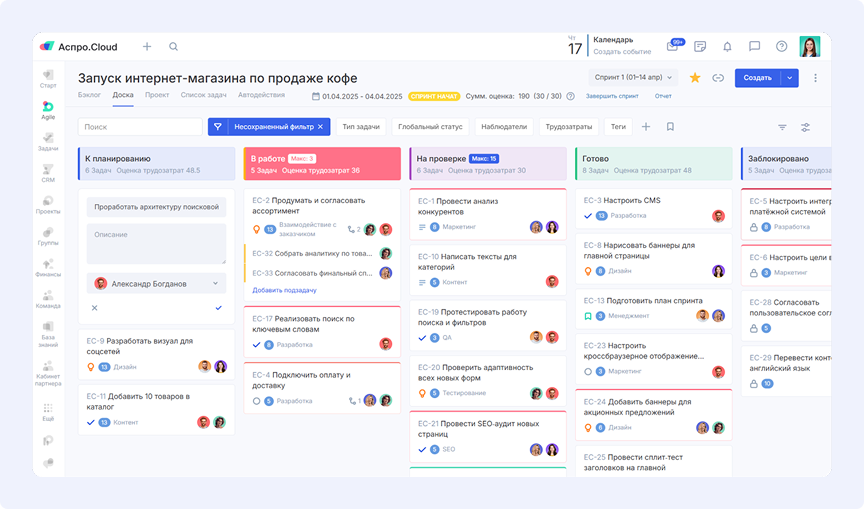 Аспро.Cloud — отечественная система для комплексного управления бизнесом. Инструменты сервиса помогают вести проекты, в том числе по Agile. Аспро.Cloud совмещает удобство использования, практичность и гибкость.