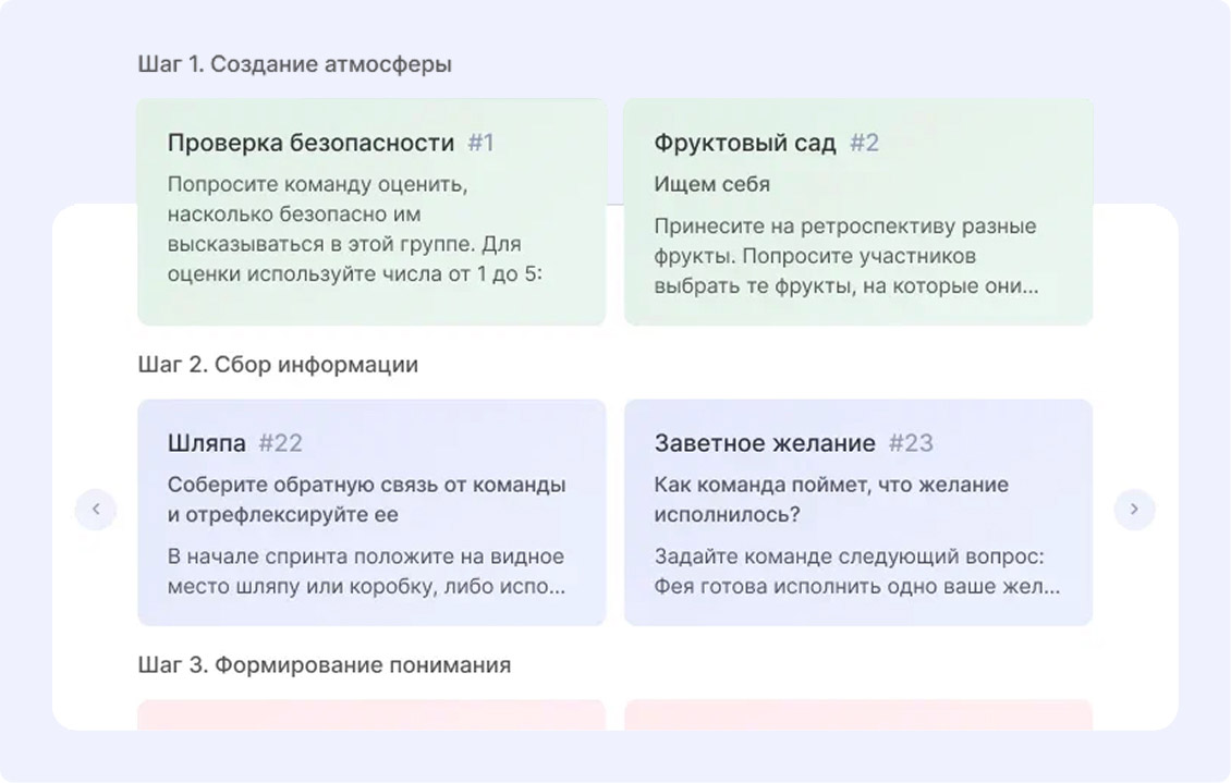 - Ретроспектива — члены команды обсуждают, какие процессы требуют доработки, как можно повысить эффективность работы.