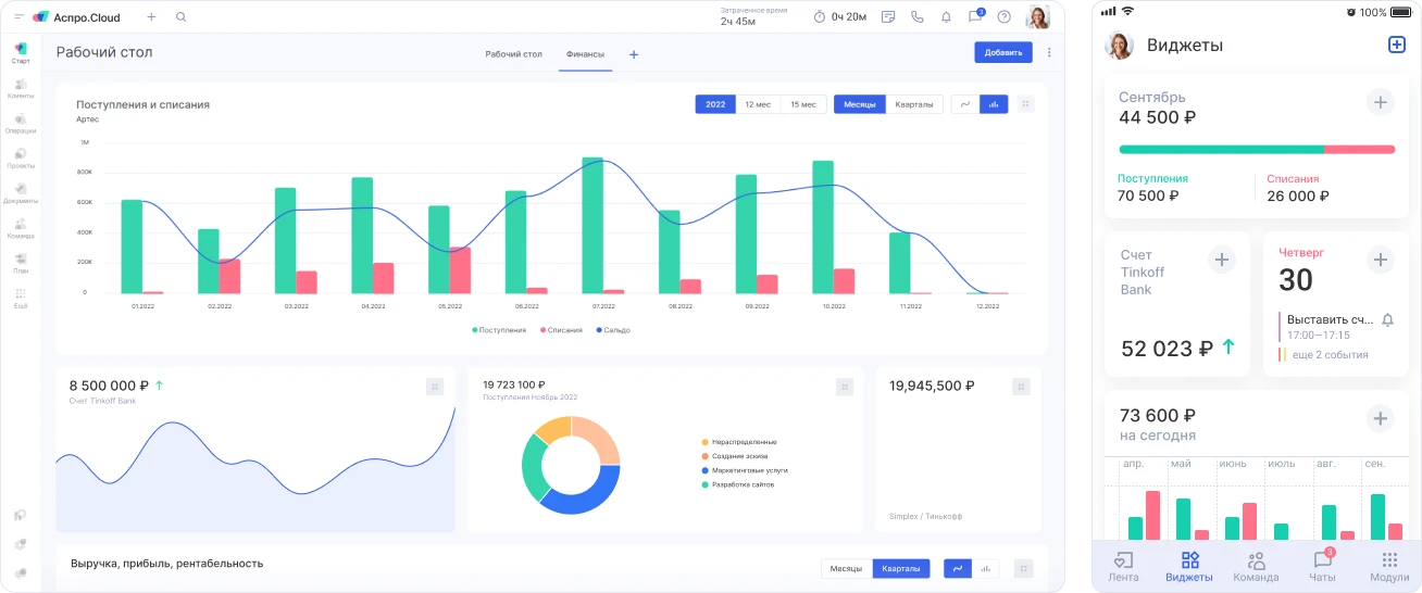Оптимизация бизнес-процессов помогает контролировать все стороны бизнеса — от документооборота и заключения сделок до расчета рентабельности каждого проекта. Внедрение Аспро.Cloud экономит рабочее время сотрудников и помогает навести порядок в задачах и финансах.