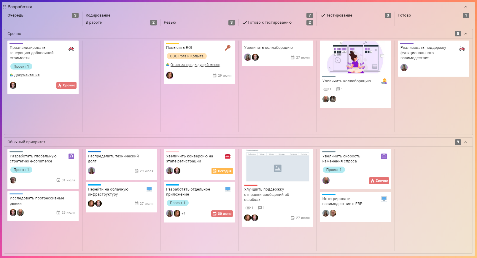 Гибкая настройка. Можно подстроить доски под любую методологию — Scrum или Kanban. Удобное пространство для совместной работы онлайн.