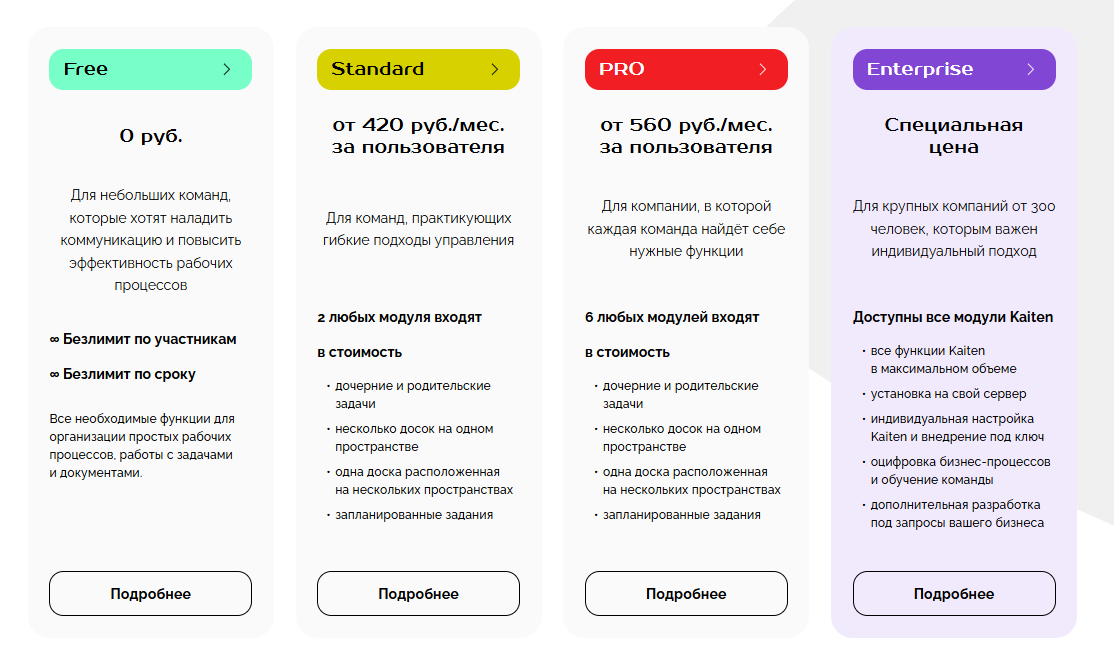 Аспро.Agile предлагает 1 бесплатный и 3 платных тарифа.