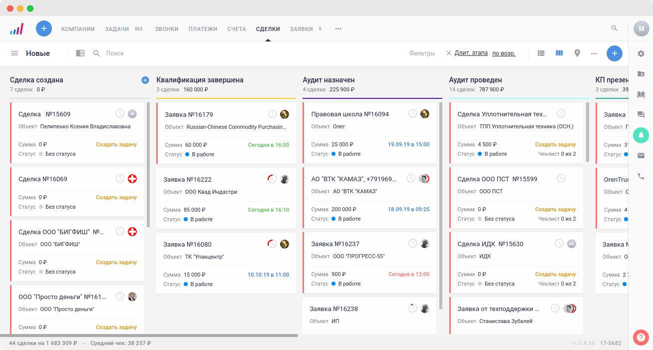 Автоматическое создание сделок и покупателей. В системе есть автосоздание сделок при условиях. Например, при переходе сделки на другой этап система самостоятельно создаст новый объект. Так, снизите нагрузку на сотрудников.