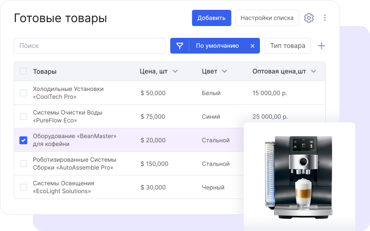 Исключите человеческий фактор. CRM-система b2b продаж поможет учесть все тонкости сделки: НДС, розничную и оптовую цену, персональную скидку. Заполните каталог один раз и подставляйте товары и услуги в сделку для точного расчета.