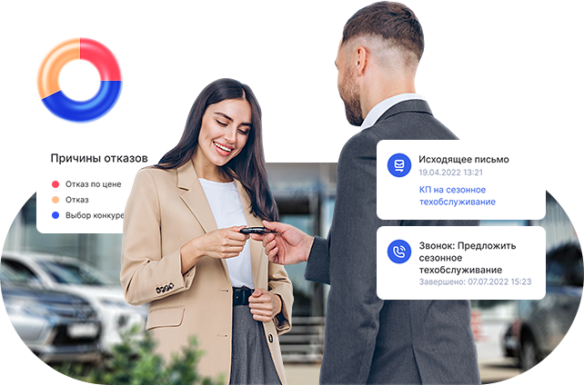 CRM формирует отчеты по продажам, лидам и эффективности менеджеров. Руководитель видит динамику сделок, загрузку сотрудников, конверсию в тест-драйвы и повторные продажи.