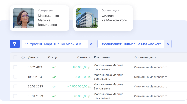 Система зафиксирует всех контрагентов в едином списке и сохранит историю взаимодействия с каждым.