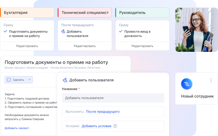 Ни один бизнес не существует без операционной работы. Аспро.Cloud позволяет сократить время выполнения таких задач, чтобы вы и ваша команда смогли сфокусироваться на решении важных вопросов. Автоматизируйте согласование счетов, прием на работу или любой другой сценарий. А чтобы вы были уверены в результате, вы всегда можете отследить, как проходил бизнес-процесс.