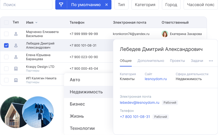 С CRM для экспедиторов ни один контакт не потеряется. Система автоматически формирует базу контрагентов, чтобы вы смогли в любой момент возобновить сотрудничество. Представителей одного заказчика можно объединить в карточку компании. Аспро.Cloud также хранит данные партнеров, например, транспортных и страховых компаний. А благодаря фильтру по категориям контакты не смешаются.