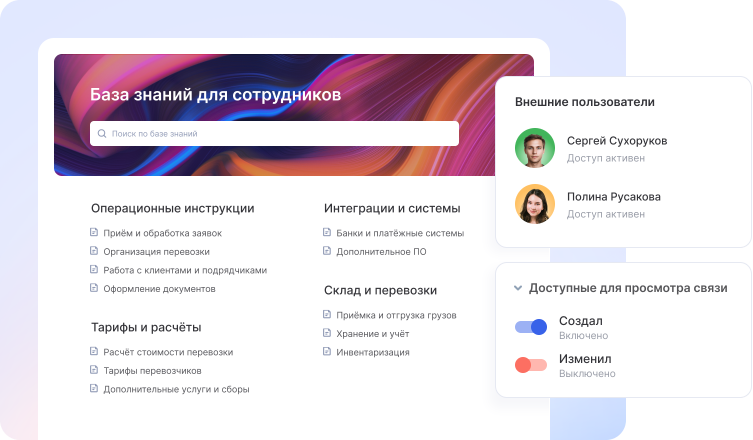 Когда знания и опыт сосредоточены в одной голове, уход ключевого сотрудника может подорвать все бизнес-процессы. Избежать этого помогает корпоративная база знаний. Добавляйте чеклисты, регламенты и инструкции, чтобы любой специалист мог быстро разобраться в особенностях работы. А еще благодаря этому новички смогут быстро адаптироваться в компании, а вам не придется каждый раз тратить время на обучение.